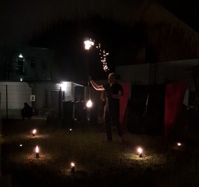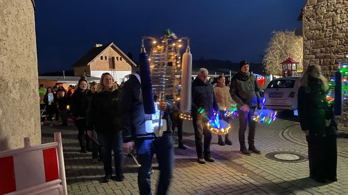 Der Schierstedter Spielmannszug begleitete uns beim Laternenumzug durch das Dorf. Zum Abschluss gab es eine Feuershow.