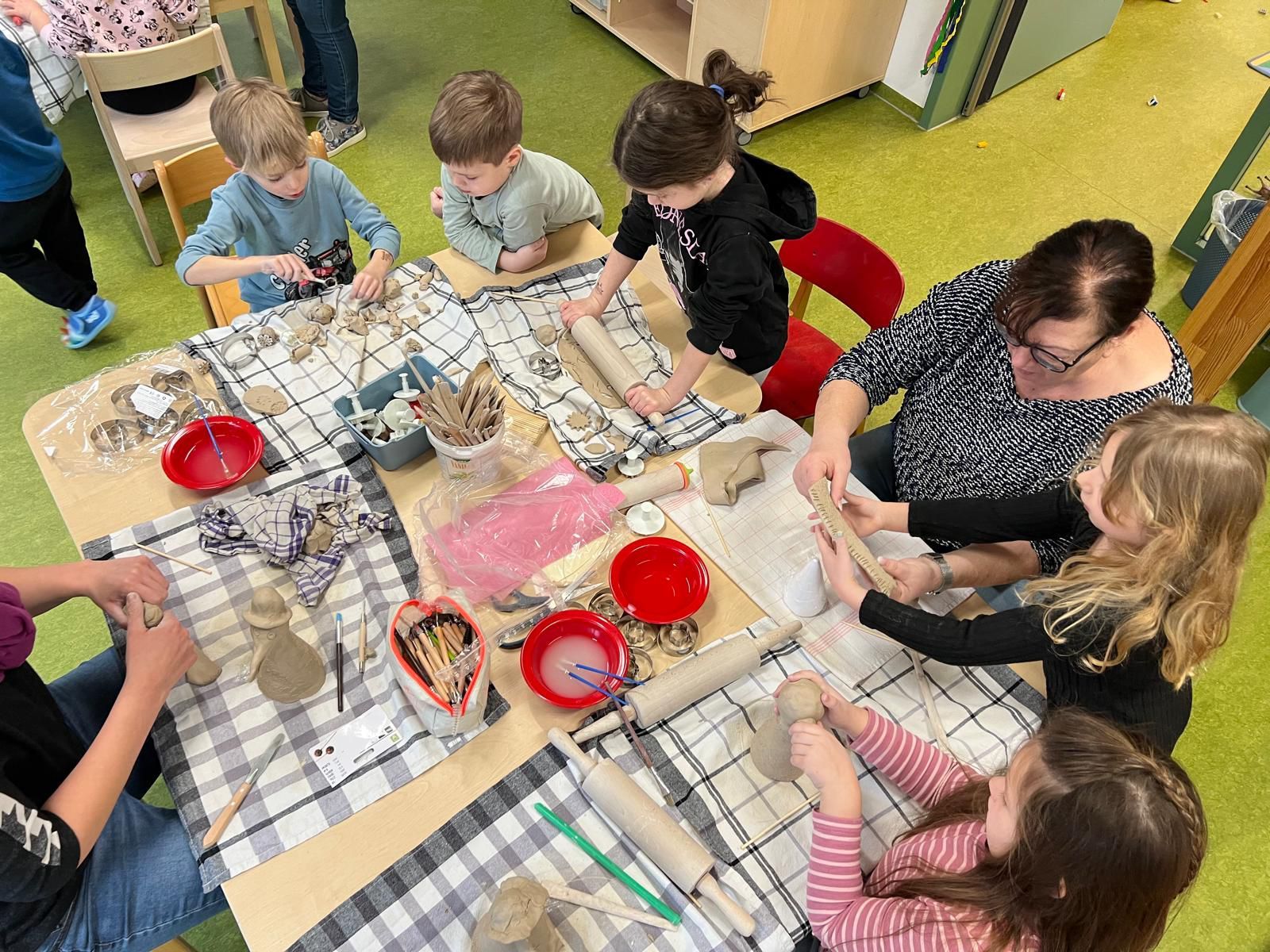 Am Dienstag stand Töpfern auf den Programm und Mittwoch ging es ins Theater wo wir den gestiefelten Kater geschaut haben.